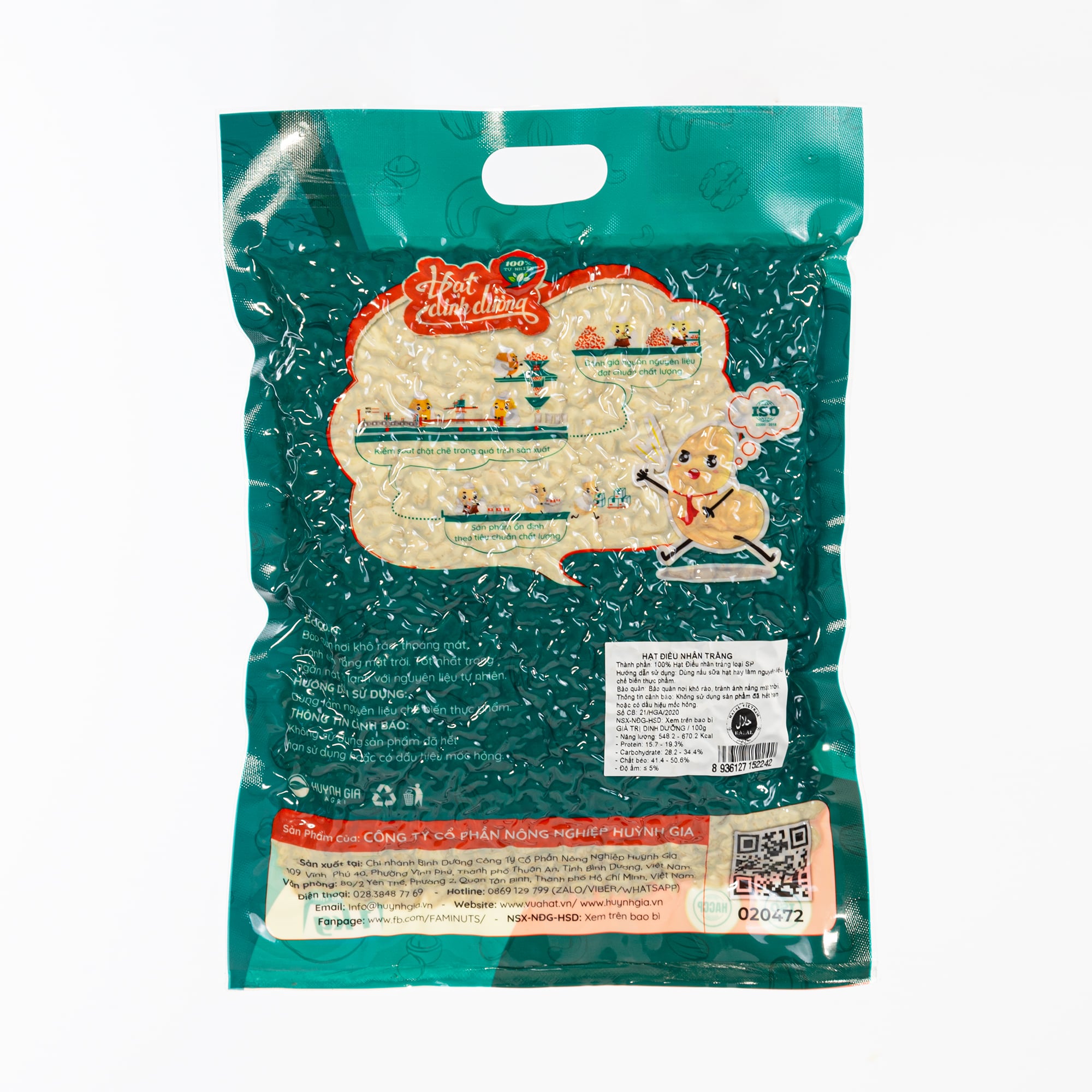 Sản phẩm hạt điều nhân trắng của Huỳnh Gia được sản xuất tại nhà máy đạt tiêu chuẩn chất lượng ISO, HACCP, HALAL.