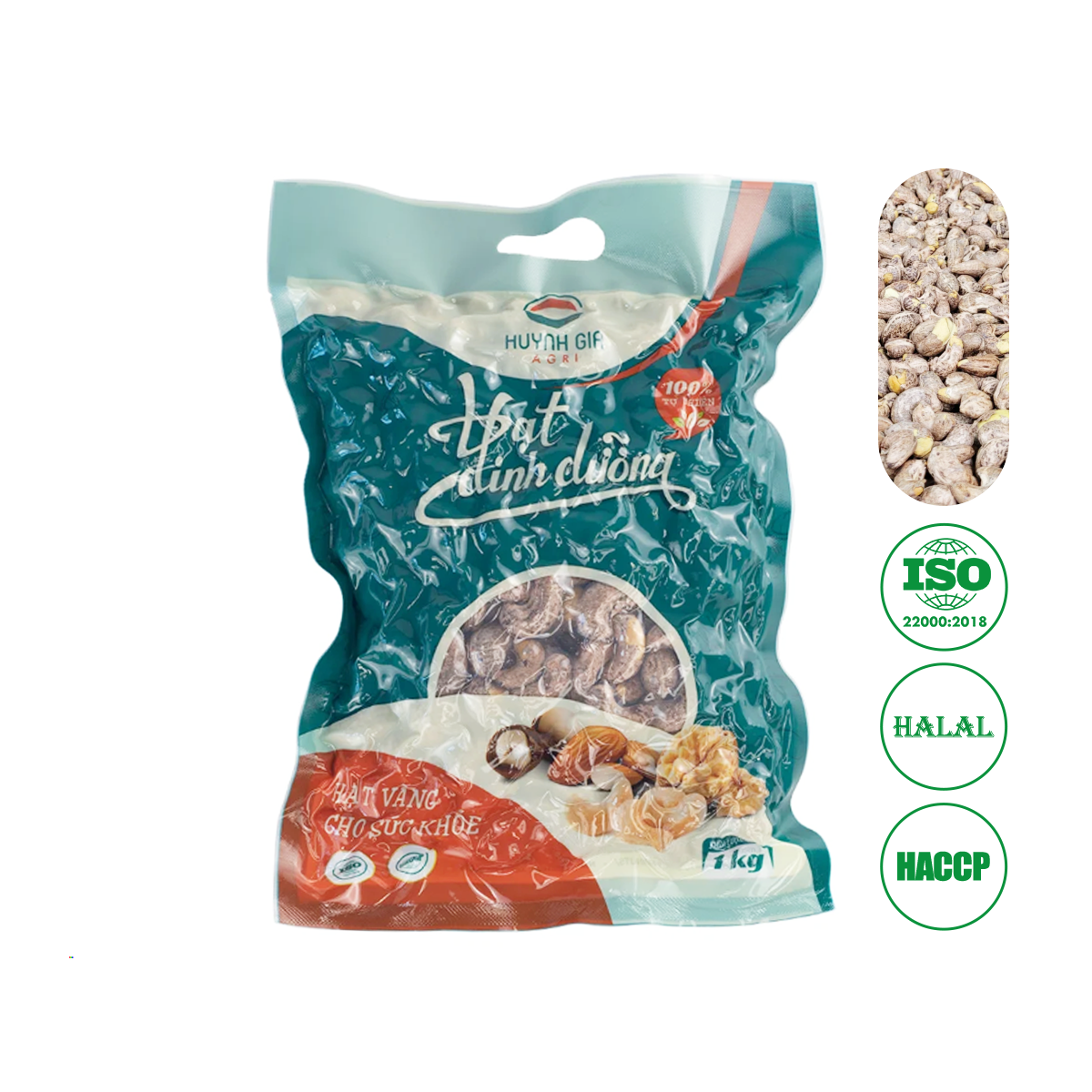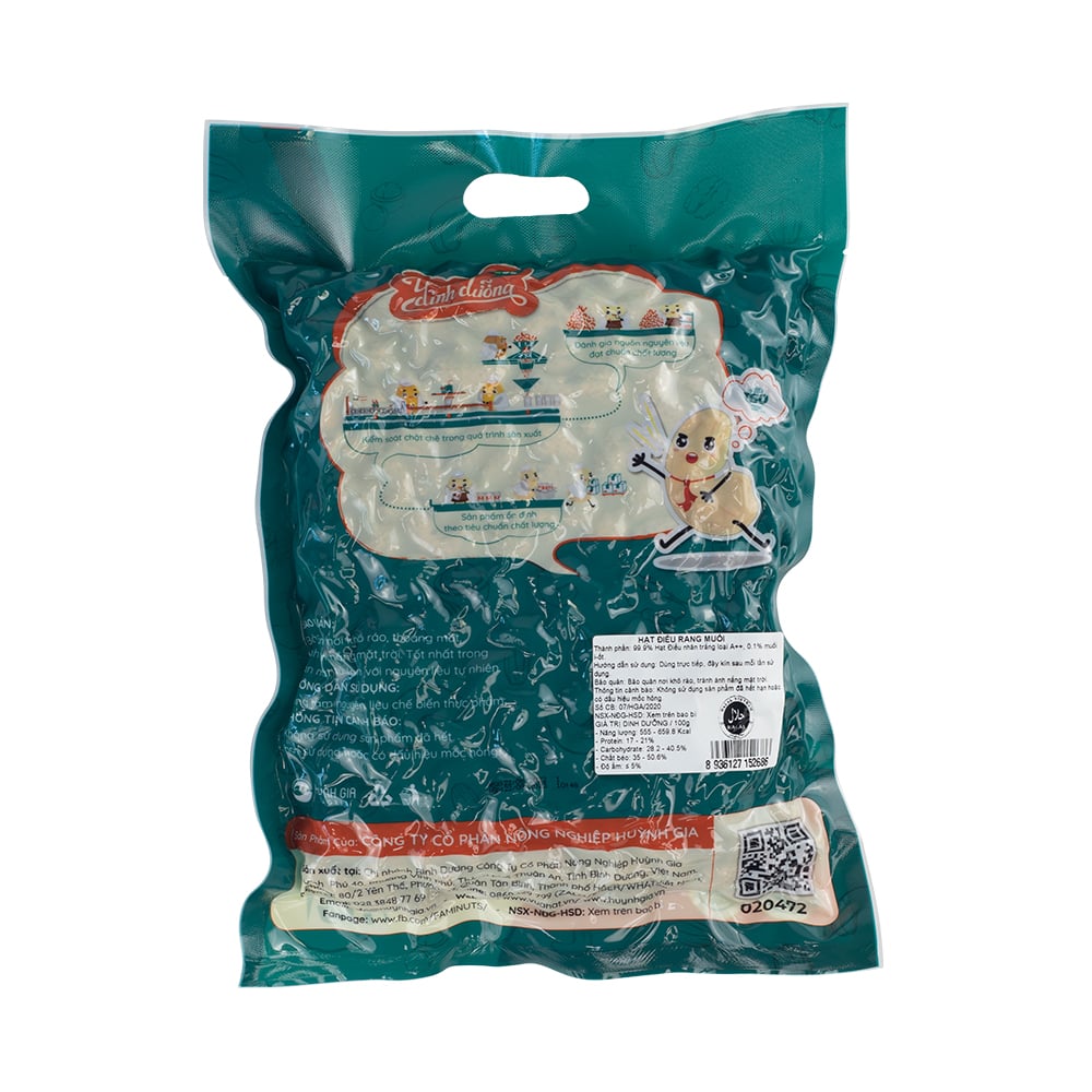 Sản phẩm hạt điều rang muối Huỳnh Gia được sản xuất tại nhà máy đạt tiêu chuẩn chất lượng ISO, HACCP, HALAL.